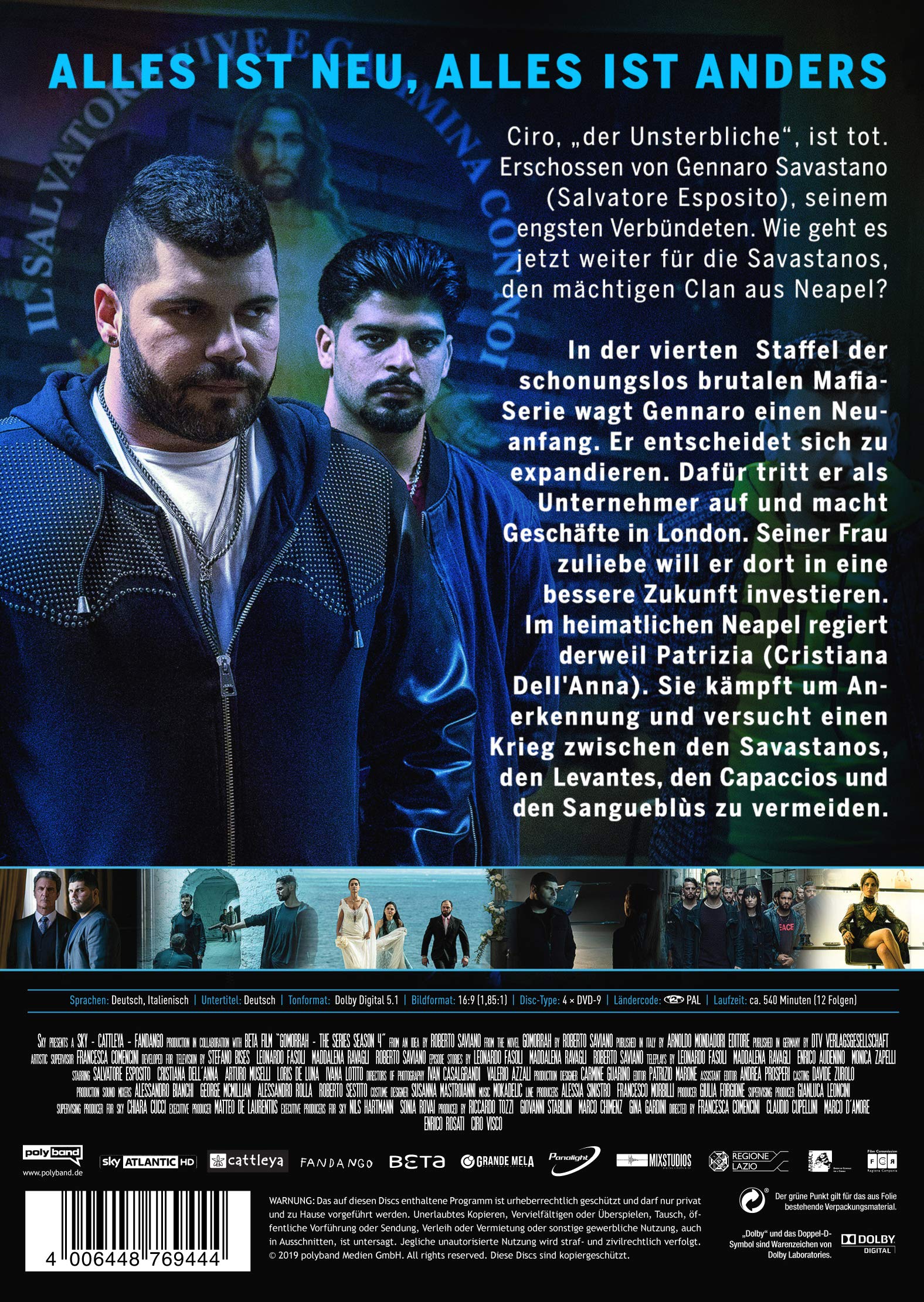 Alles ist neu, alles ist anders. Ciro, der Unsterbliche, ist tot. Erschossen von Gennaro Savastano (Salvatore Esposito), seinem engsten Verbündeten. Wie geht es jetzt weiter für die Savastanos, den mächtigen Clan aus Neapel? In der vierten Staffel der schonungslos-brutalen Mafia-Serie wagt Gennaro einen Neuanfang. Er entscheidet sich zu expandieren. Dafür tritt er als Unternehmer auf und macht Geschäfte in London. Seiner Frau zuliebe will er dort in eine bessere Zukunft investieren. Im heimatlichen Neapel regiert derweil Patrizia (Cristiana Dell'Anna). Sie kämpft um Anerkennung und versucht einen Krieg zwischen den Savastanos, den Levantes, den Capaccios und den Sangueblùs zu vermeiden. Die italienische Mafia-Serie basiert auf dem gleichnamigen, dokumentarischen Roman von Roberto Saviano aus dem Jahr 2006. Der italienische Schriftsteller wird seit Erscheinung des Buches von der Camorra bedroht und lebt verdeckt an wechselnden Orten.