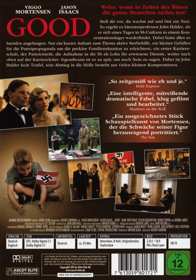 Stell dir vor, du wachst auf und bist ein Nazi. So ergeht es Literaturprofessor John Halder, als er sich eines Tages in SS-Uniform in einem Konzentrationslager wiederfindet. Dabei hatte alles so harmlos angefangen. Nur ein kurzer Aufsatz zum Thema aktive Sterbehilfe, ein kleiner Gefallen für die Parteipropaganda, um die prekäre Familiensituation zu erleichtern, ein erster Karriereschub, der Parteieintritt, die Aufnahme in die SS als Lohn für erwiesene Dienste, weiter nach oben auf der Karriereleiter. Irgendwann ist es zu spät, um noch Nein zu sagen. Dabei ist John Halder kein Teufel, sein Abstieg in die Hölle besteht aus vielen kleinen Kompromissen.