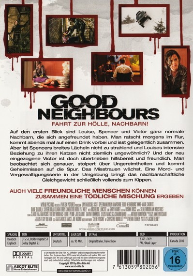 Auf den ersten Blick sind Louise, Spencer und Victor ganz normale Nachbarn, die sich angefreundet haben. Man ratscht morgens im Flur, kommt abends mal auf einen Drink vorbei und isst gelegentlich zusammen. Aber ist Spencers breites Lächeln nicht zu strahlend und Louise' intensive Beziehung zu ihren Katzen nicht ziemlich ungewöhnlich? Und der neu eingezogene Victor ist doch übertrieben hilfsbereit und freundlich. Man beobachtet sich genauer, stolpert über Ungereimtheiten und kommt Geheimnissen auf die Spur. Das Misstrauen wächst. Eine Mord- und Vergewaltigungsserie in der Umgebung bringt das nachbarschaftliche Gleichgewicht schliesslich vollends zum Kippen.