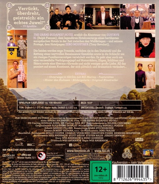 Ralph Fiennes, Edward Norton, Jude Law, Willem Dafoe, Bill Murray, Jeff Goldblum, Tom Wilkinson, Adrien Brody, Owen Wilson, Tilda Swinton...Harvey Keitel, Bob Balaban, Florian Lukas, F. Murray Abraham, Karl Markovics, Mathieu Amalric, Jason Schwartzman, Matthias Matschke, Saoirse Ronan, Léa Seydoux, Milton Welsh, Sabine Urig, Michael Benthin, Daniel Steiner, Heike Hanold-Lynch, Rainer Reiners, Gabriel Rush, Paul Schlase, Hendrik von Bültzingslöwen, Roy Macready, Tony Revolori, Carl Sprague