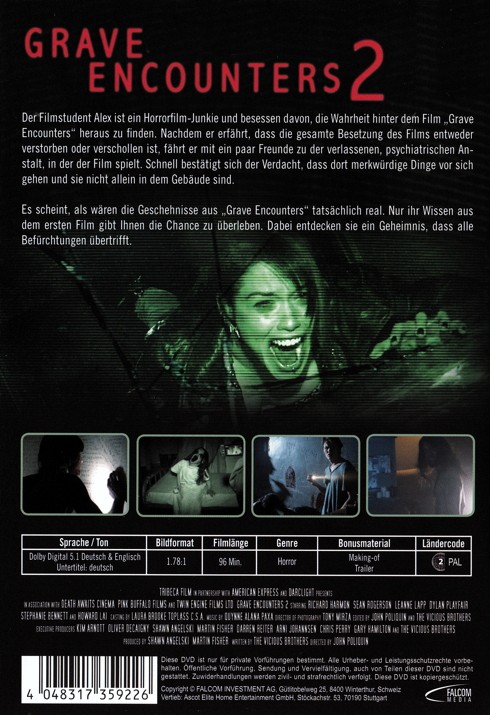Der Filmstudent Alex ist ein Horrorfilm-Junkie und besessen davon, die Wahrheit hinter dem Film 'Grave Encounters' herauszufinden. Nachdem er erfährt, dass die gesamte Besetzung des Films entweder verstorben oder verschollen ist, fährt er mit ein paar Freunde zu der verlassenen, psychiatrischen Anstalt, in der der Film spielt. Schnell bestätigt sich der Verdacht, dass dort merkwürdige Dinge vor sich gehen und sie nicht allein in dem Gebäude sind. Es scheint, als wären die Geschehnisse aus 'Grave Encounters' tatsächlich real. Nur ihr Wissen aus dem ersten Film gibt Ihnen die Chance zu überleben. Dabei entdecken sie ein Geheimnis, das alle Befürchtungen übertrifft.