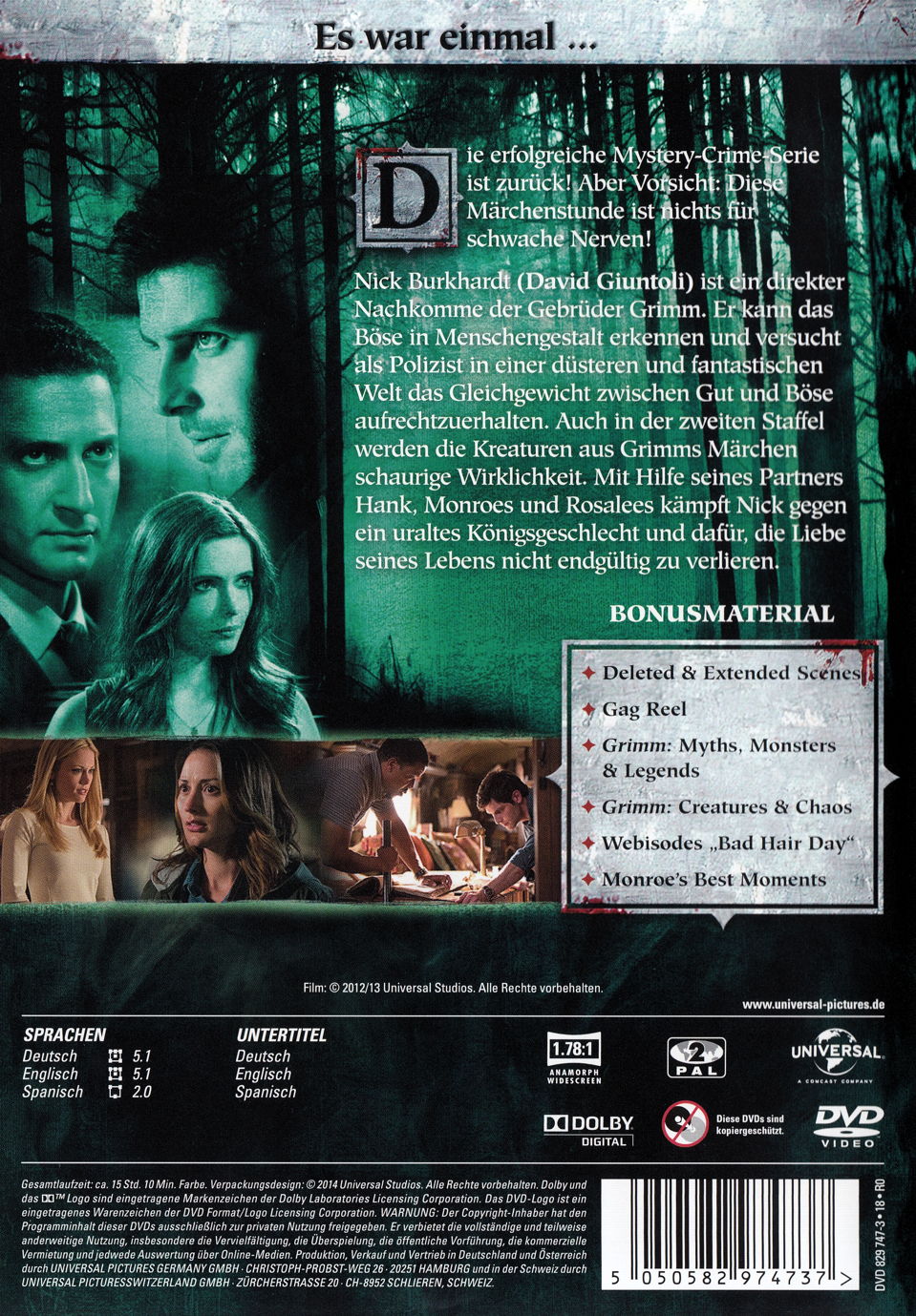 Nick Burckhardt ist ein direkter Nachkomme der Gebrüder Grimm. Er kann das Böse in Menschengestalt erkennen und versucht als Polizist in einer düsteren und fantastischen Welt das Gleichgewicht zwischen Gut und Böse aufrechtzuerhalten. Auch in der zweiten Staffel werden die Kreaturen aus Grimms Märchen schaurige Wirklichkeit. Mit Hilfe seines Partners Hank, Monroe und Rosalee kämpft Nick gegen ein uraltes Königsgeschlecht und dafür, die Liebe seines Lebens nicht endgültig zu verlieren.