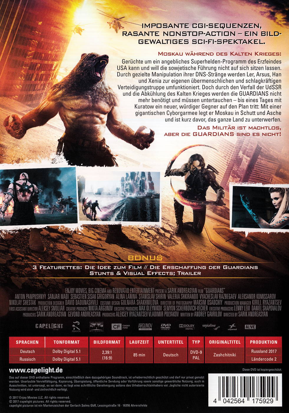 Moskau während des Kalten Krieges: Gerüchte um ein angebliches Superhelden-Programm des Erzfeindes USA kann und will die sowjetische Führung nicht auf sich sitzen lassen. Durch gezielte Manipulation ihrer DNS-Stränge werden Ler, Arsus, Khan und Kseniya zur eigenen übermenschlichen und schlagkräftigen Verteidigungstruppe umfunktioniert. Doch durch den Verfall der UdSSR und die Abkühlung des kalten Krieges werden die Guardians nicht mehr benötigt und müssen untertauchen - bis eines Tages mit Kuratov ein neuer, würdiger Gegner auf den Plan tritt: Mit einer gigantischen Cyborgarmee legt er Moskau in Schutt und Asche und ist kurz davor, das ganze Land zu unterwerfen. Das Militär ist machtlos, aber die Guardians sind es nicht!
