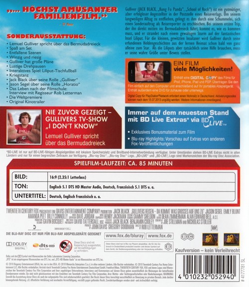 Gulliver (Jack Black, "Kung Fu Panda", "School of Rock") ist ein gutmütiger, aber erfolgloser Angestellter in der Poststelle eines Reiseverlags. Um seinem langweiligen Alltag zu entfliehen, gelingt es ihm durch eine Schummelei sich einen Sonderauftrag als Reise-Reporter zu erschleichen. Bei seinem ersten Trip, der ihn direkt mitten ins Bermudadreieck führt, kommt es wie es kommen muss und er strandet nach einem gewaltigen Sturm auf der fantastischen Insel Liliput. Für die kleinen, gewitzten Insulaner wird Gulliver durch seine erfundenen Heldengeschichten aus der fernen Heimat schon bald von ganz alleine zum Star. Als die Liliputs aber tatsächlich seine Hilfe brauchen, muss er seine wahre Grösse unter Beweis stellen.