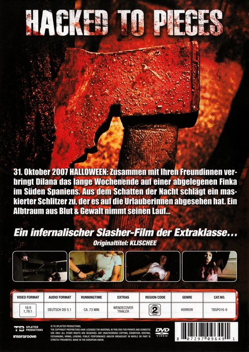 31. Oktober 2007 Halloween: Zusammen mit Ihren Freundinnen verbringt Dilana das lange Wochenende auf einer abgelegenen Finka im Süden Spaniens. Aus dem Schatten der Nacht schlägt ein maskierter Schlitzer zu, der es auf die Urlauberinnen abgesehen hat. Ein Albtraum aus Blut & Gewalt nimmt seinen Lauf...