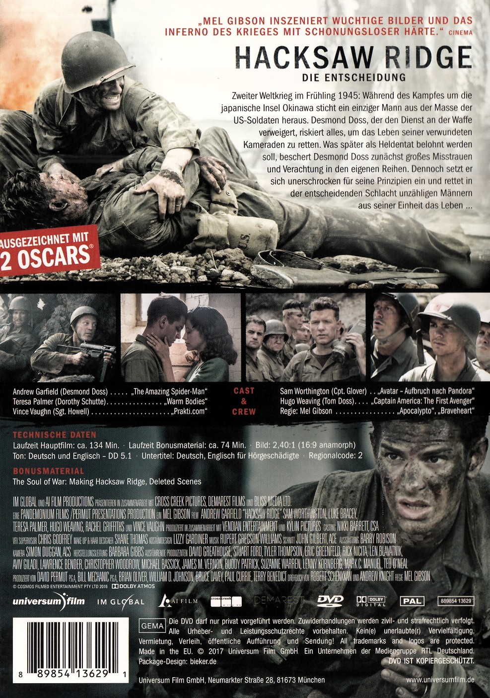 - Titel Hacksaw Ridge - Die Entscheidung [DVD]