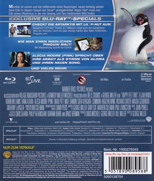 Mumble ist zurück - und der Meister des Stepptanzes hat mittlerweile einen Sohn namens Erik! Während Mumble geboren wurde um zu tanzen, kann klein Erik seinen Rhythmus einfach nicht finden. In diesem phantastischen Sequel des Oscar-preisgekrönten Animations-Superhits Happy Feet*, muss Erik herausfinden, was sein "Ding" in einer Welt voll Gesang und Tanz ist. Als das Leben der Kaiser Pinguine durch einen riesigen Eisberg gefährdet ist, muss die gesamte Tierwelt der Antarktis zusammen halten um die Gruppe zu befreien ? und in diesem Moment findet Erik auch seinen Rhythmus.