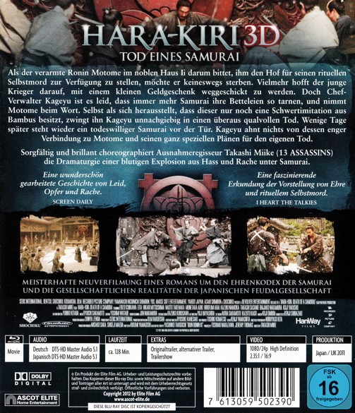 - Titel Hara-Kiri - Tod eines Samurai [Blu-ray 3D]