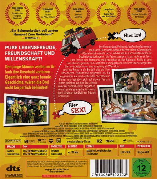 Die Freunde Lars, Philip und Jozef verbindet eine gemeinsame Sehnsucht. Obwohl bereits in ihren Zwanzigern, hatten sie noch niemals Sex - und das soll sich schnellstens ändern! Doch dieses Vorhaben in die Tat umzusetzen, ist gar nicht so einfach. Lars fesselt eine fortschreitende Krankheit an den Rollstuhl, Philip ist vom Hals abwärts gelähmt und Jozef ist fast komplett blind. Und ihre überfürsorglichen Eltern verbieten ihnen eine sorgfältig als Wein-Tour getarnte Reise in ein Bordell, das auf ihre besonderen Bedürfnisse eingestellt ist. So organisieren sie sich heimlich den nächstbesten Fahrer namens Claude, der sich bald als die Fahrerin Claude herausstellt, und begeben sich auf eigene Faust in einem Kleinbus auf eine Tour, die sie aus ihrer wohlbehüteten belgischen Heimat an die spanische Küste und damit direkt an das Ziel ihrer Träume führen soll.