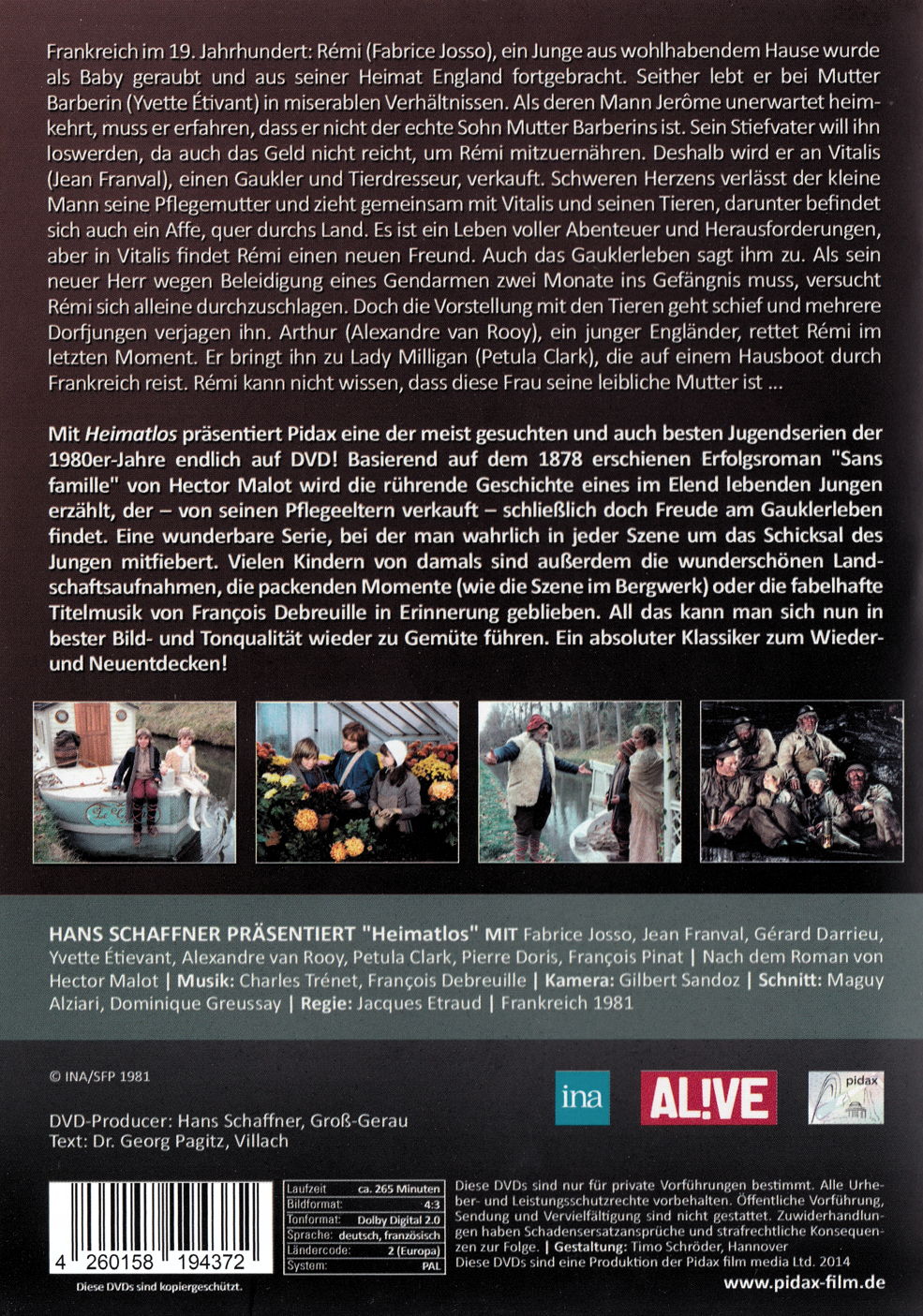Frankreich im 19. Jahrhundert: Rémi (Fabrice Josso), ein Junge aus wohlhabendem Hause wurde als Baby geraubt und aus seiner Heimat England fortgebracht. Seither lebt er bei Mutter Barberin (Yvette Étivant) in miserablen Verhältnissen. Als deren Mann Jerôme unerwartet heimkehrt, muss er erfahren, dass er nicht der echte Sohn Mutter Barberins ist. Sein Stiefvater will ihn loswerden, da auch das Geld nicht reicht, um Rémi mitzuernähren. Deshalb wird er an Vitalis (Jean Franval), einen Gaukler und Tierdresseur, verkauft. Schweren Herzens verlässt der kleine Mann seine Pflegemutter und zieht gemeinsam mit Vitalis und seinen Tieren, darunter befindet sich auch ein Affe, quer durchs Land. Es ist ein Leben voller Abenteuer und Herausforderungen, aber in Vitalis findet Rémi einen neuen Freund. Auch das Gauklerleben sagt ihm zu. Als sein neuer Herr wegen Beleidigung eines Gendarmen zwei Monate ins Gefängnis muss, versucht Rémi sich alleine durchzuschlagen. Doch die Vorstellung mit den Tieren geht schief und mehrere Dorfjungen verjagen ihn. Arthur (Alexandre van Rooy), ein junger Engländer, rettet Rémi im letzten Moment. Er bringt ihn zu Lady Milligan (Petula Clark), die auf einem Hausboot durch Frankreich reist. Rémi kann nicht wissen, dass diese Frau seine leibliche Mutter ist...