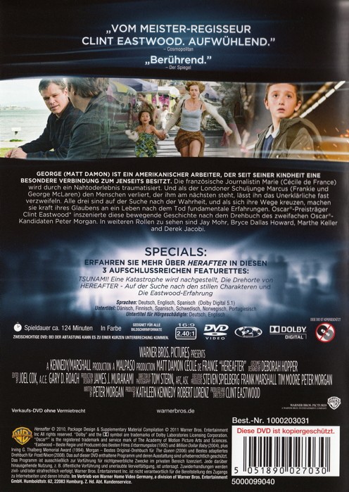 George (Matt Damon) ist ein amerikanischer Arbeiter, der seit seiner Kindheit eine besondere Verbindung zum Jenseits besitzt. Die französische Journalistin Marie (Cécile de France) wird durch ein Nahtoderlebnis traumatisiert. Und als der Londoner Schuljunge Marcus (Frankie und George McLaren) den Menschen verliert, der ihm am nächsten steht, lässt ihn das Unerklärliche fast verzweifeln. Alle drei sind auf der Suche nach der Wahrheit, und als sich ihre Wege kreuzen, machen sie kraft ihres Glaubens an ein Leben nach dem Tod fundamentale Erfahrungen.
