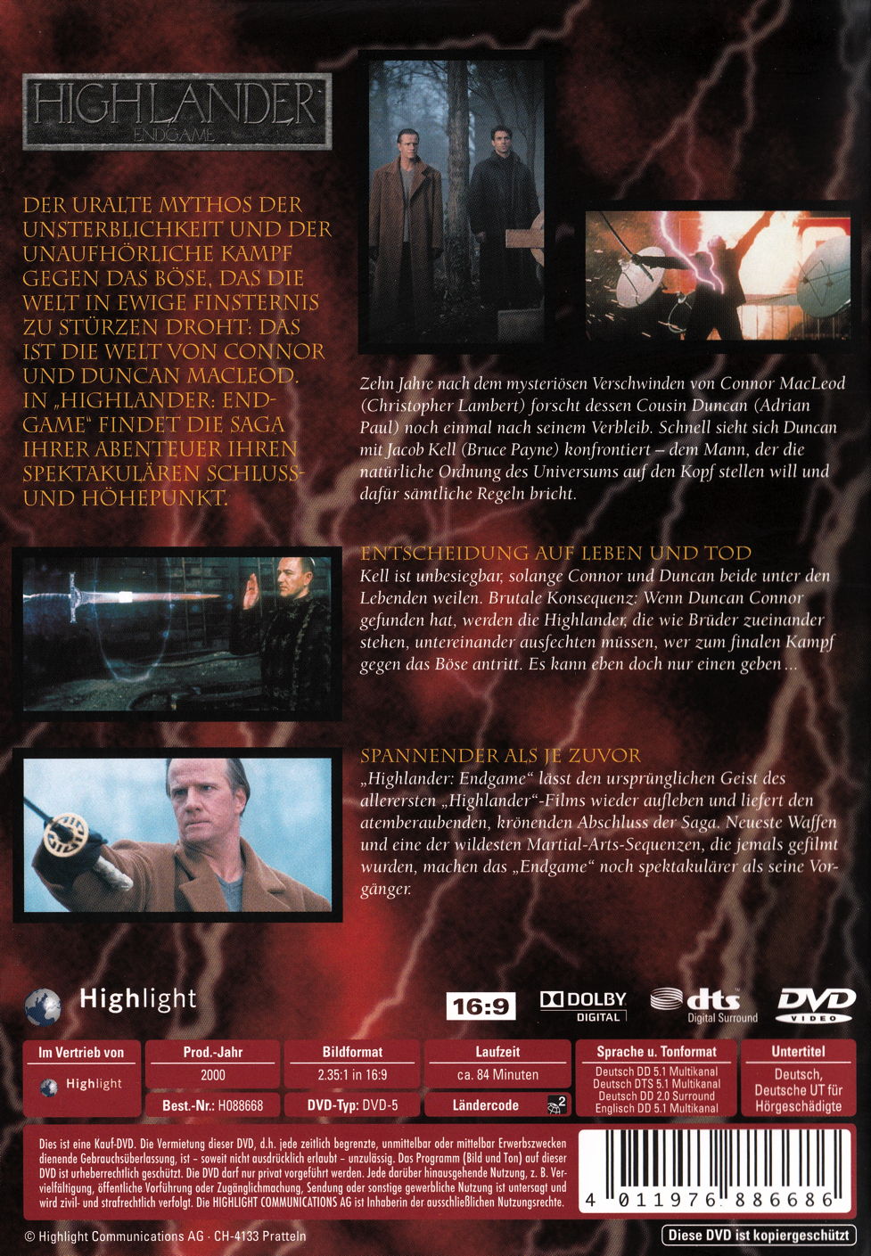 Zehn Jahre nach dem mysteriösen Verschwinden von Connor MacLeod forscht dessen Cousin Duncan nocheinmal nach seinem Verbleib. Schnell sieht sich Duncan mit Jacob Kell konfrontiert - dem Mann, der die natürliche Ordnung des Universums auf den Kopf stellen will und dafür sämtliche Regeln bricht. Kell ist unbesiegbar, solange Connor und Duncan beide unter den Lebenden weilen. Brutale Konsequenz: Wenn Duncan Connor gefunden hat, werden die Highlander, die wie Brüder zueinander stehen, untereinander ausfechten müssen, wer zum finalen Kampf gegen das Böse antritt. Es kann eben doch nur einen geben...