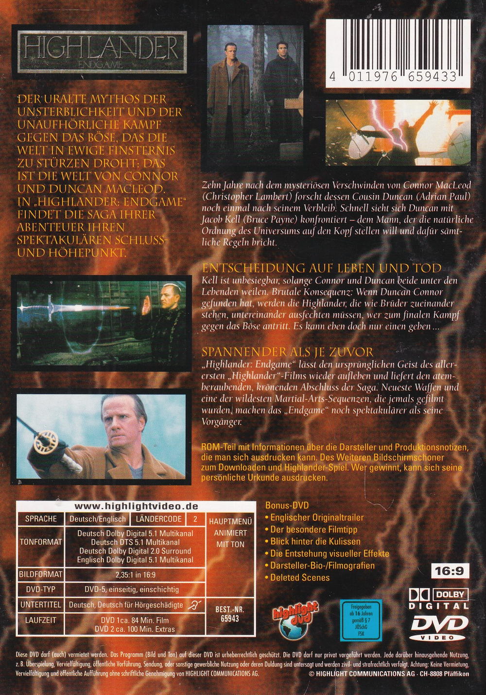 Zehn Jahre nach dem mysteriösen Verschwinden von Connor MacLeod forscht dessen Cousin Duncan nocheinmal nach seinem Verbleib. Schnell sieht sich Duncan mit Jacob Kell konfrontiert - dem Mann, der die natürliche Ordnung des Universums auf den Kopf stellen will und dafür sämtliche Regeln bricht. Kell ist unbesiegbar, solange Connor und Duncan beide unter den Lebenden weilen. Brutale Konsequenz: Wenn Duncan Connor gefunden hat, werden die Highlander, die wie Brüder zueinander stehen, untereinander ausfechten müssen, wer zum finalen Kampf gegen das Böse antritt. Es kann eben doch nur einen geben...