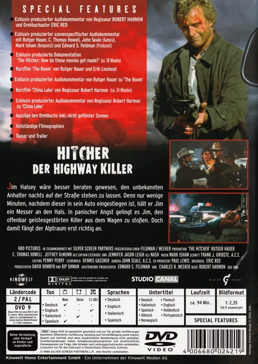 Der junge Jim Halsey nimmt nachts einen Anhalter mit. Sekunden später hält ihm John Ryder, der Hitcher, ein Messer an den Hals. Trotz panischer Angst gelingt es Jim, den offenbar geistesgestörten Killer aus dem Wagen zu stossen. Doch damit fängt der Alptraum erst richtig an. In einem tödlichen Katz- und Mausspiel taucht der Hitcher immer wieder in Jims Nähe auf und hinterlässt eine blutige Spur. Immer mehr Menschen werden ermordet. Der Verdacht liegt bei Jim. Er gerät in Panik. Erst als John Ryder vor den Augen des Sheriffs ein junges Mädchen tötet, wird er festgenommen. Die Polizei ist zufrieden. Nur Jim weiss, dass der Wahnsinn noch nicht zu Ende ist...