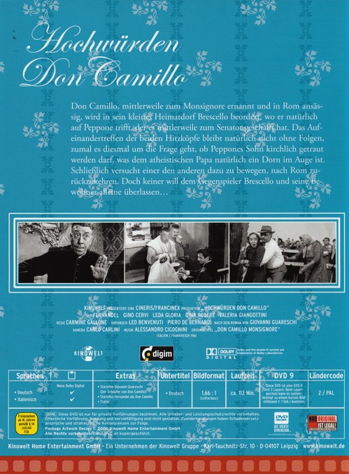 Don Camillo, mittlerweile zum Monsignore ernannt und in Rom ansässig, wird in sein kleines Heimatdorf Brescello beordert, wo er natürlich auf Peppone trifft, der es mittlerweile zum Senator geschafft hat. Das Aufeinandertreffen der beiden Hitzköpfe bleibt natürlich nicht ohne Folgen, zumal es diesmal um die Frage geht, ob Peppones Sohn kirchlich getraut werden darf, was dem atheistischen Papa natürlich ein Dorn im Auge ist. Schliesslich versucht einer, den anderen dazu zu bewegen, nach Rom zurückzukehren. Doch keiner will dem Gegenspieler Brescello und seine Bewohner alleine überlassen...
