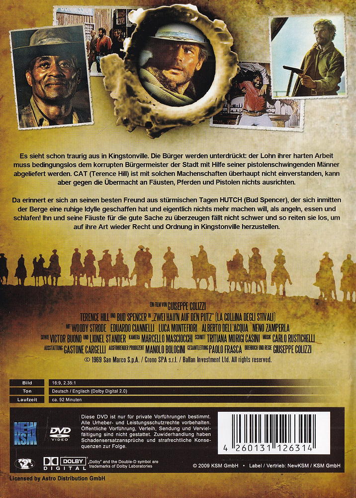 Da erinnert er sich an seinen besten Freund aus stürmischen Tagen HUTCH (Bud Spencer), der sich inmitten der Berge eine ruhige Idylle geschaffen hat und eigentlich nichts mehr machen will, als angeln, essen und schlafen! Ihn und seine Fäuste für die gute Sache zu überzeugen fällt nicht schwer und so reiten sie los, um auf ihre Art wieder Recht und Ordnung in Kingstonville herzustellen.