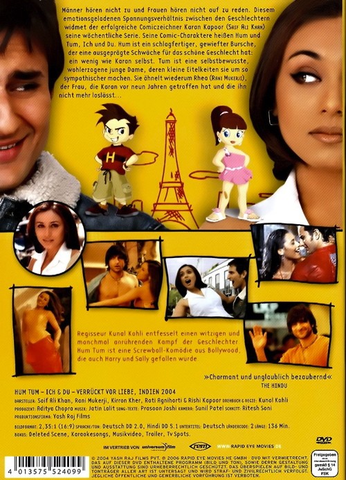 Männer hören nicht zu und Frauen hören nicht auf zu reden. Diesem emotionsgeladenen Spannungsverhältnis zwischen den Geschlechtern widmet der erfolgreiche Comiczeichner Karan Kapoor seine wöchentliche Serie. Seine Comic-Charaktere heissen Hum und Tum, Ich und Du. Hum eist ein schlagfertiger, gewiefter Bursche, der eine ausgeprägte Schwäche für das schöne Geschlecht hat: ein wenig wie Karan selbst. Tum ist eine selbstbewusste, wohlerzogene junge Dame, deren kleine Eitelkeiten sie um so sympathischer machen. Sie ähnelt wiederum Rhea, der Frau, die Karan vor neun Jahren getroffen hat und die ihn nicht mehr loslässt...