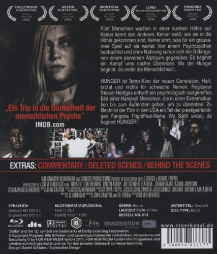 Hunger ist Terror-Kino der neuen Generation. Hart, brutal und nichts für schwache Nerven. Regisseur Steven Hentges entwirft ein psychologisch ausgereiftes Bild einer Handvoll Menschen, die in einer Extremsituation bis zum Äussersten gehen, um zu überleben. Zu Recht ist der Film in den USA ein Teil der prestigeträchtigen Fangoria Fright-Fest-Reihe. Wo SAW endet, da beginnt HUNGER!