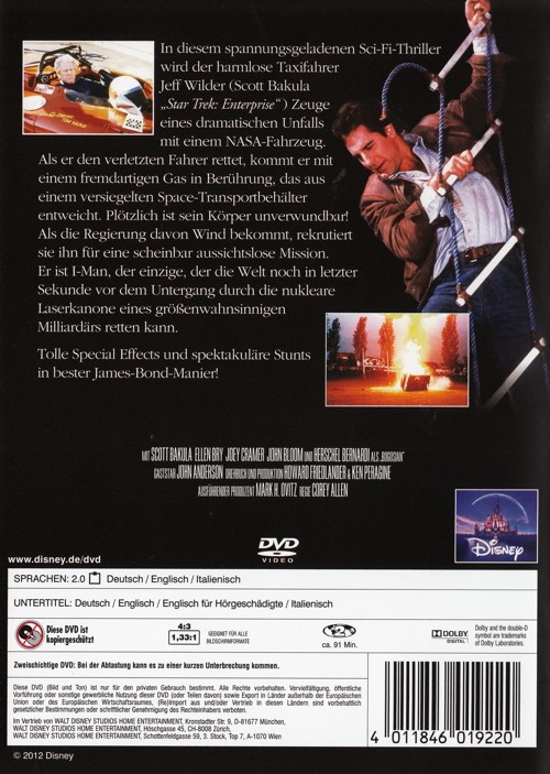 In diesem spannungsgeladenen Sci-Fi-Thriller wird der harmlose Taxifahrer Jeff Wilder Zeuge eines dramatischen Unfalls mit einem NASA Fahrzeug. Als er den verletzten Fahrer rettet, kommt er mit einem fremdartigen Gas in Berührung, das aus einem versiegelten Space Transportbehälter entweicht. Plötzlich ist sein Körper unverwundbar! Als die Regierung davon Wind bekommt, rekrutiert sie ihn für eine scheinbar aussichtslose Mission. Er ist I-Man, der einzige, der die Welt noch in letzter Sekunde vor dem Untergang durch die nukleare Laserkanone eines grössenwahnsinnigen Milliardärs retten kann.
