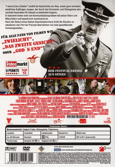 "I want to be a Soldier" erzählt die Geschichte von Alex, einem ganz normalen, niedlichen 8-jährigen Jungen, der durch das Fernsehen und Videogames eine morbide Faszination für Gewalt zu entwickeln beginnt.