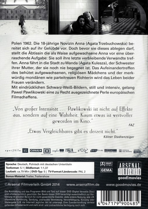 Polen im Jahr 1962. Die 18-jährige Anna (Agata Trzebuchowska), eine Waise, wurde von Nonnen im Kloster großgezogen. Bevor sie ihr Gelübde ablegt, muss sie Wanda (Agata Kulesza) besuchen, ihre einzige lebende Verwandte. Wanda erzählt Anna, dass sie Jüdin sei. Für beide Frauen beginnt eine Reise, die sie nicht nur zu ihrer tragischen Familiengeschichte führt, sondern ihnen auch zeigt, wer sie wirklich sind und wo sie hingehören. Sie hinterfragen ihre Religionen und die Ideale, an die sie geglaubt haben. Beide versuchen sie, ihr Leben weiterzuleben, aber nur eine von ihnen schafft es.