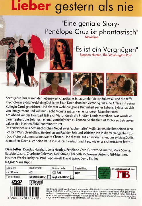 Die Psychologin Sylvia schickt den untreuen Arbeitslosen Schauspieler Victor in die Wüste, nachdem er sie betrogen hat. Groß ist die Trauer, noch größer der Durst, bis Victor eines Tages im Abfallcontainer landet und eine zweite Chance bekommt. Eine Zeitreise soll seine Fehler ungeschehen machen. Doch erneut funkt das Schicksal dazwischen, und einmal mehr gleitet Victor seine große Liebe aus den Händen. Doch das Leben hält eine Überraschung in Gestalt der bezaubernden Louise bereit.