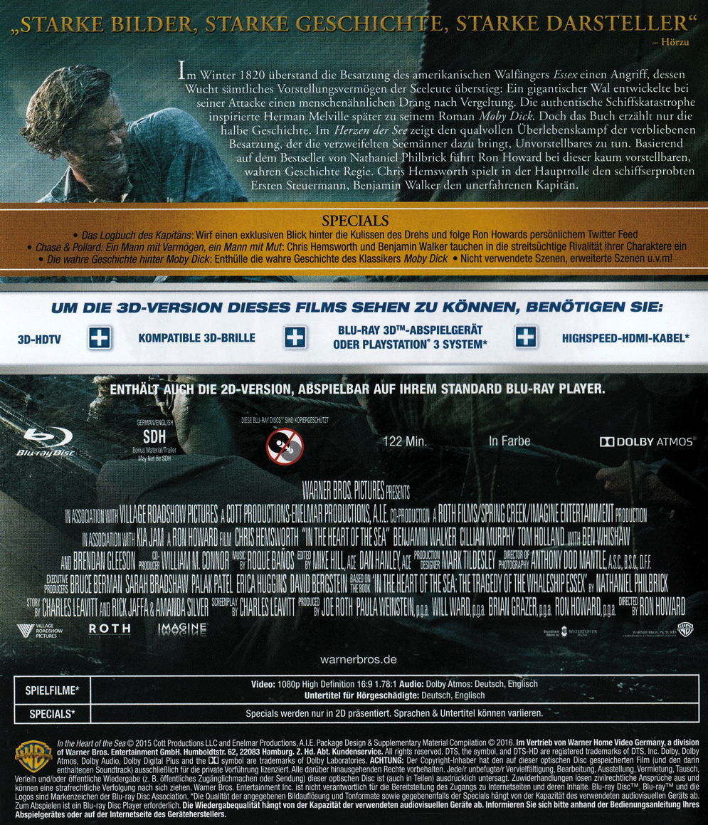 Im Winter 1820 überstand die Besatzung des amerikanischen Walfängers Essex einen Angriff, dessen Wucht sämtliches Vorstellungsvermögen der Seeleute überstieg: Ein gigantischer Wal entwickelte bei seiner Attacke einen menschenähnlichen Drang nach Vergeltung. Die authentische Schiffskatastrophe inspirierte Herman Melville später zu seinem Roman "Moby Dick". Doch das Buch erzählt nur die halbe Geschichte. "Im Herzen der See" zeigt den qualvollen Überlebenskampf der verbliebenen Besatzung, der die verzweifelten Seemänner dazu bringt, Unvorstellbares zu tun. Stürme, Hunger und Panik nötigen die Männer dazu, den Wert des menschlichen Lebens und die Ethik ihres Berufs infrage zu stellen, während sich der Kapitän auf dem offenen Meer zu orientieren versucht und der erste Offizier an seinem Plan festhält, den grossen Wal doch noch zu erlegen.