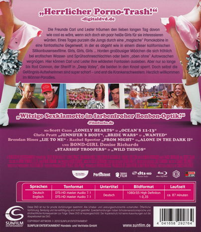 Die Freunde Carl und Lester träumen den lieben langen Tag davon wie cool es wäre, wenn sich doch ein paar heisse Girls für sie interessieren würden. Eines Tages purzeln die Jungs durch eine "magische" Pornokabine in eine fantastische Gegenwelt, in der es abgeht wie in einem dieser kalifornischen Silikonbusensexfilme. Girls, Girls, Girls... Horden grossbusiger Mädchen die sich fröhlich bei erotischen Wasser- und Sprühsahneschlachten oder beim "oben ohne" Autowaschen vergnügen. Hier können Carl und Lester ihre wildesten Fantasien ausleben. Aber nur so lange bis Rod Cannon, der Sheriff im "Deep Valey", die beiden in den Knast sperrt. Doch selbst die Gefängnis-Aufseherinnnen sind super scharf - und erst die Krankenschwestern. Herzlich willkommen im Männer-Paradies.