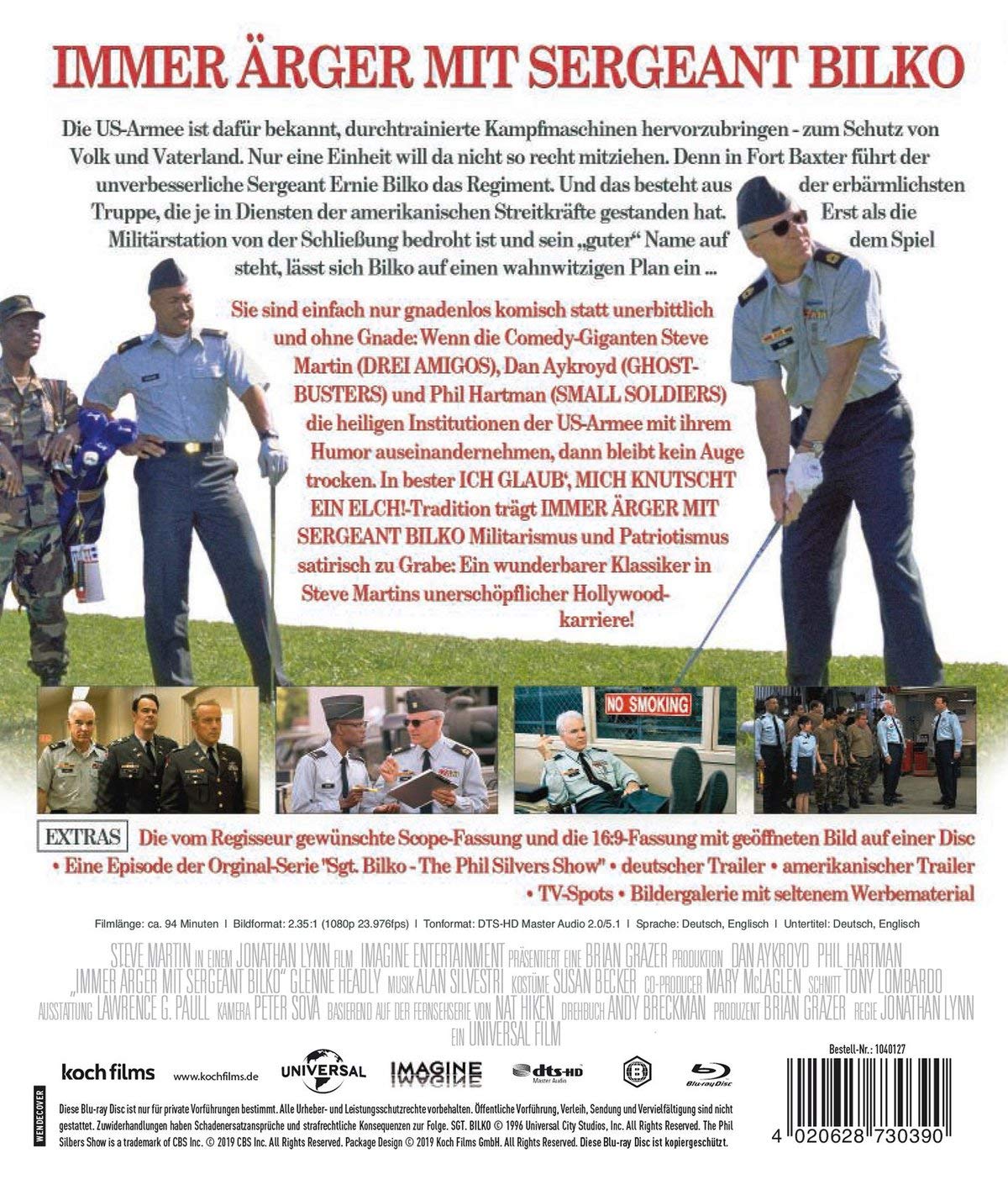 Sie sind einfach nur gnadenlos komisch statt unerbittlich und ohne Gnade: Wenn die Comedy-Giganten Steve Martin (DREI AMIGOS), Dan Akroyd (GHOSTBUSTERS) und Phil Hartman (SMALL SOLDIERS) die heiligen Institutionen der US-Armee mit ihrem Humor auseinandernehmen, dann bleibt kein Auge trocken. In bester ICH GLAUB‘, MICH KNUTSCHT EIN ELCH!-Tradition trägt IMMER ÄRGER MIT SERGEANT BILKO Militarismus und Patriotismus satirisch zu Grabe: Ein wunderbarer Klassiker in Steve Martins unerschöpflicher Hollywoodkarriere!