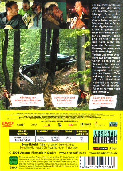 Der Geschichtsprofessor Baisch, sein depressiver und tablettensüchtiger Schwager Anzengruber und ein manischer Kleinkünstler haben nach einer Feier einen Autounfall auf einer abgelegenen Landstrasse. Eingekeilt zwischen zwei Bäumen bleiben sie stecken, Türen und Fenster lassen sich nicht mehr öffnen, die Fenster aus Panzerglas lassen sich nicht einschlagen. Verletzt und ohne Aussicht auf Entkommen warten sie tagelang auf Rettung. Ihr einziger Proviant ist eine Schüssel Heringssalat und einige Flaschen Prosecco. Wut- und Angstanfälle wechseln mit überdrehter Heiterkeit und verzweifelten Weinkrämpfen. Aber es kommt noch schlimmer...