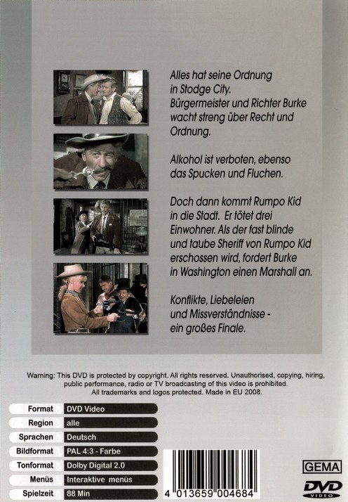 Doch dann kommt Rumpo Kid in die Stadt. Er tötet drei Einwohner. Als der fast blinde und taube Sheriff von Rumpo Kid erschossen wird, fordert Burke in Washington einen Marshall an.