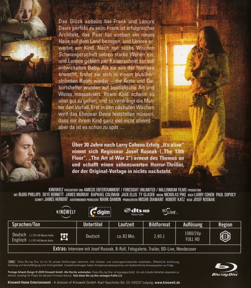 Das Glück scheint bei Frank und Lenore Davis perfekt zu sein: Frank ist erfolgreicher Architekt, das Paar hat soeben ein neues Haus auf dem Land bezogen, und Lenore erwartet ein Kind. Nach nur sechs Wochen Schwangerschaft setzen starke Wehen ein, und Lenore gebiert per Kaiserschnitt ein voll entwickeltes Baby. Als sie aus der Narkose erwacht, findet sie sich in einem blutüberströmten Raum wieder – die Ärzteund Geburtshelfer wurden auf bestialische Art und Weise massakriert. Ihrem Kind scheint es aber gut zu gehen, und so verdrängt die Mutter den Vorfall. Erst in den nächsten Wochen wird das Ehepaar Davis feststellen müssen, dass mit ihrem Kind ganz viel nicht stimmt – aber da ist es schon zu spät...