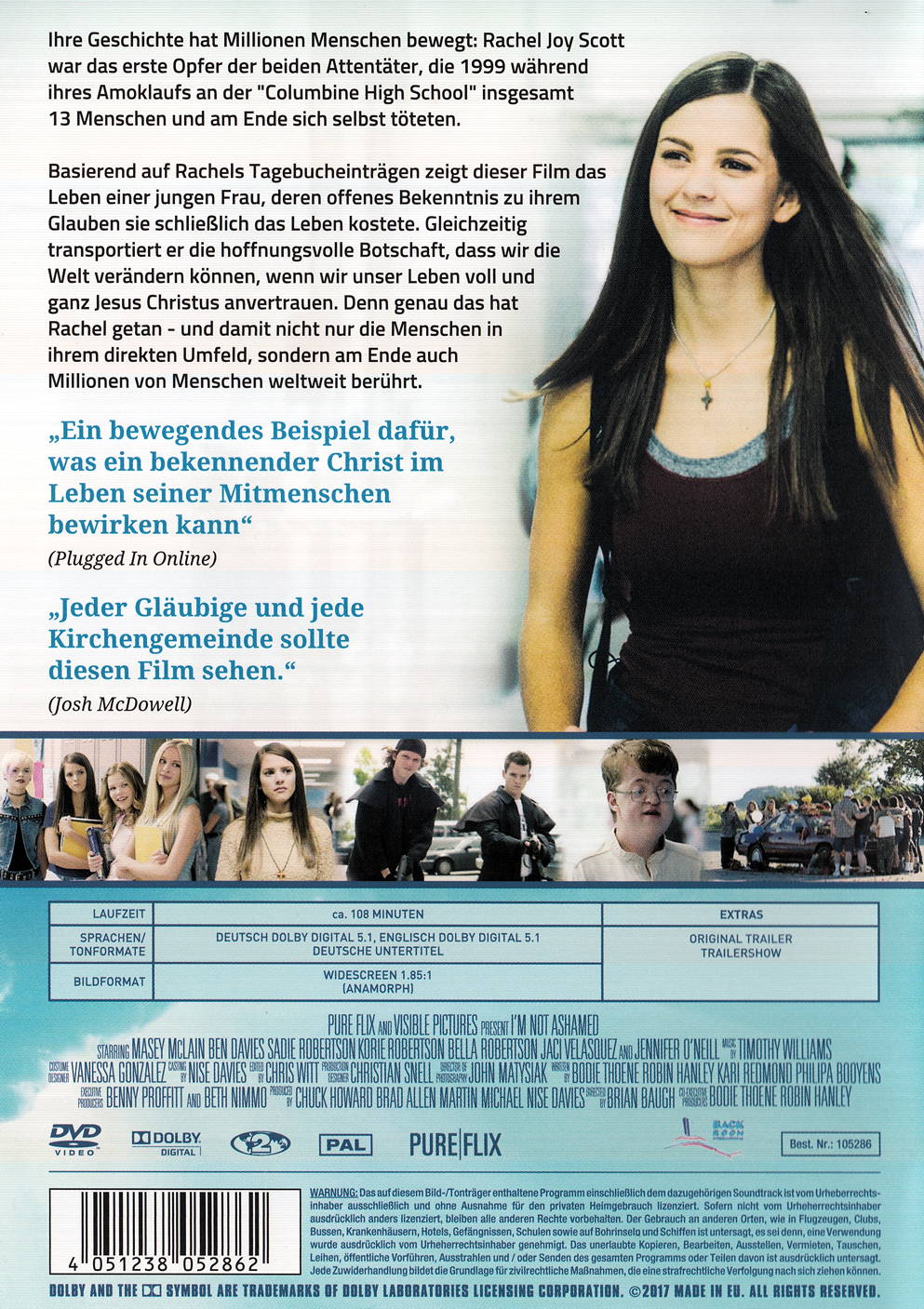 Ihre Geschichte hat Millionen Menschen bewegt: Rachel Joy Scott war das erste Opfer der beiden Attentäter, die 1999 während ihres Amoklaufs an der "Columbine High School" insgesamt 13 Menschen und am Ende sich selbst töteten. Dieser Film geht jedoch weit über das tragische Ereignis hinaus: Basierend auf Rachels Tagebucheinträgen gewährt er Einblicke in das Leben einer jungen Frau, deren offenes Bekenntnis zu ihrem Glauben sie schliesslich das Leben kostete. Gleichzeitig transportiert er die hoffnungsvolle Botschaft, dass wir die Welt verändern können, wenn wir unser Leben voll und ganz Jesus Christus anvertrauen. Denn genau das hat Rachel getan - und damit nicht nur die Menschen in ihrem direkten Umfeld, sondern am Ende auch Millionen von Menschen weltweit berührt.