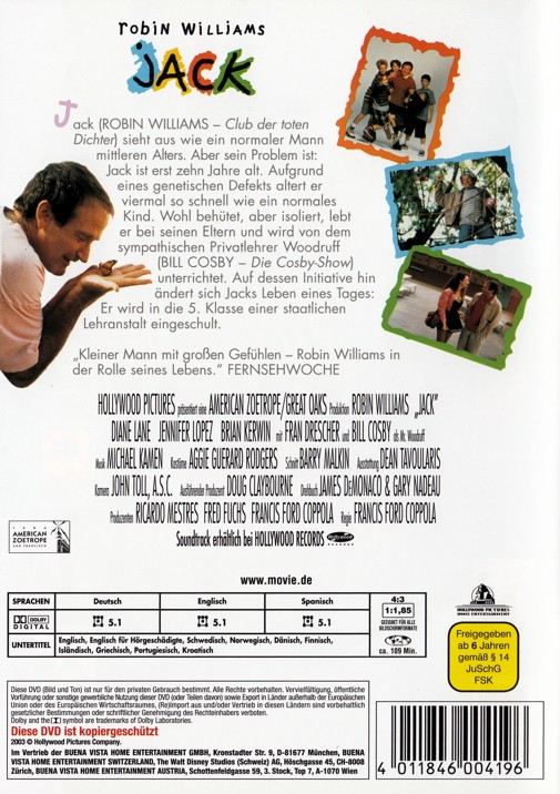 Jack sieht aus wie ein normaler Mann mittleren Alters. Aber es gibt da ein Problem: Jack ist erst zehn Jahre alt. Aufgrund eines genetischen Fehlers altert sein Körper viermal so schnell als normal. Wohlbehütet aber isoliert lebt er bei seinen Eltern und wird von dem sympathischen Privatlehrer Woodruff unterrichtet. Auf dessen Initiative ändert sich Jacks Leben eines Tages: Er wird in die 5. Klasse eingeschult...