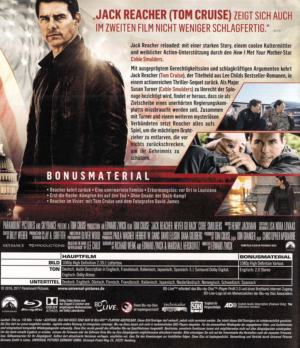 - Originaltitel Jack Reacher 2 - Never go back