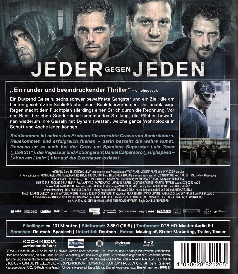 Ein Dutzend Geiseln, sechs schwer bewaffnete Gangster und ein Ziel: die am besten geschützten Schliessfächer einer Bank in Valencia leerzuräumen und durch einen eigens gegrabenen Tunnel in die Freiheit zu entkommen. Uruguayo und Gallego wollen nicht weniger, als das eine grosse Ding zu drehen, nach dem sich alle zur Ruhe setzen können. Der unablässige Regen und eine Überschwemmung machen den zunehmend gegeneinander aufgebrachten Männern allerdings einen Strich durch die Rechnung. Ganz zu schweigen, von den Sondereinsatzkommandos, die vor der Bank Stellung bezogen, die aber auch keine Ahnung von dem haben, was sich in den Schliessfächern befindet. Das nämlich hat mehr Sprengkraft als die Dynamitwesten, die die Gangster den Geiseln angelegt haben und die bei der kleinsten Berührung einen ganzen Wohnblock in Schutt und Asche legen können...