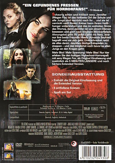 Schaurig schön und höllisch sexy. Jennifer (Megan Fox) ist das heisseste Girl der Schule und alle Jungs sind verrückt nach ihr... und sie ist verrückt nach ihnen! Keiner kann ihrem Heisshunger widerstehen und das im wahrsten Sinne des Wortes, denn Jennifer ist von einem Dämon besessen und giert nach frischem Männerfleisch. Ahnungslos geht ihr jedes Opfer ins Netz, aber nur ihre beste Freundin Needy (Amand a Seyfried) begreift was vor sich geht. Unerschrocken setzt sie alles daran, Jennifers blutige Eskapaden zu stoppen - und das möglichst noch bevor es allen Jungs an den Kragen geht!