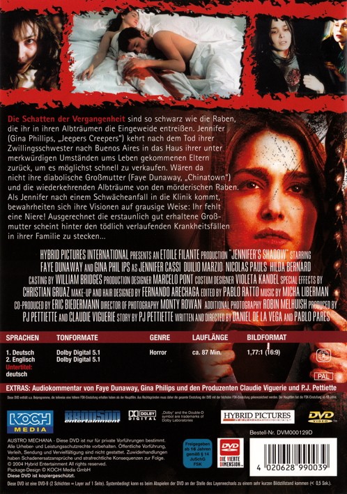 Die Schatten der Vergangenheit sind so schwarz wie die Raben, die ihr in ihren Alpträumen die Eingeweide entreissen. Jennifer kehrt nach dem Tod ihrer Zwillingsschwester nach Buenos Aires in das Haus ihrer unter merkwürdigen Umständen ums Leben gekommenen Eltern zurück, um es möglichst schnell zu verkaufen. Wären da nicht ihre diabolische Grossmutter und die wiederkehrenden Albträumen von den mörderischen Raben. Als Jennifer nach einem Schwächeanfall in die Klinik kommt, bewahrheiten sich ihre Versionen auf grausige Weise: Ihr fehlt eine Niere! Ausgerechnet die erstaunlich gut erhaltlene Grossmutter scheint hinter den tödlich verlaufenden Krankheitsfällen in ihrer Familie zu stecken...