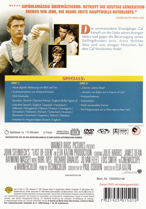 James Dean, Sam Harris, Lois Smith, Franklyn Farnum, Harry Cording, Robert Foulk, Max Wagner, Hal Taggart, Al Ferguson, Julie Harris...Lonny Chapman, Wheaton Chambers, Raymond Massey, Albert Dekker, John George, Burl Ives, William 'Bill' Phillips, Sailor Vincent, Chief Leonard George, Joe Brooks, Jonathan Haze, Timothy Carey, Mario Siletti, Richard Garrick, Earle Hodgins, Julian Rivero, Nick Dennis, Lester Dorr, Jo Van Fleet, Edward Clark, John Halloran, Barbara Baxley, Richard Davalos, Abdullah Abbas, Roger Creed, Ramsay Hill, Darren Dublin, Edward McNally, Ken Miller, Robert Morris, Jack Carr, Lillian West, Mickey Roth, Robert Gardett, José Arias, Harold Gordon, Diane Howe, Chalky Williams, Rose Plumer, Loretta Rush, Bryn Davis, Frank Mazzola, Patricia Prest, Ray Dawe, Lloyd Ford, Effie Laird, Paul Nichols, Anna Dewey, Billy Mahan, Bette Treadville, Nick Franke, Charles Anthony Hughes, Mike Marienthal, Tex Mooney, Rose Allen, George Church, Joe Dougherty, Cliff Fields, Ruth Gillis, Gail Kobe