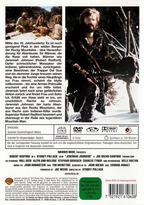 Mitte des 19. Jahrhunderts. Es ist noch genügend Platz in den wilden Bergen der Rocky Mountains, eine Herausforderung für Abenteurer, für Männer, die die Nase voll haben. Männer wie Jeremiah Johnson. Opfer schrecklicher Massaker der Indianer, gebrandmarkte, zurückgelassene Bewohner, der Trapper Del Gue und ein stummer Junge kreuzen seine Wege. Als er die Tochter eines Häuptlings zur Frau nimmt, scheint die Idylle vollkommen. Bis eine Armee-Patrouille erscheint und ihn um Hilfe bittet. Jeremiah kehrt nach einer gefährlichen Aktion zurück und findet Frau und Jungen tot. Erfüllt von Hass zieht er los, um unerbittlich Rache zu nehmen.
