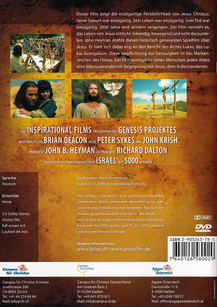 Seine Geburt war einzigartig. Sein Leben war einzigartig. Sein Tod war einzigartig. 2000 Jahre sind seitdem vergangen. Der Film versteht es, das Leben von Jesus schlicht, lebendig, bewegend und echt darzustellen. John Heyman drehte diesen historisch genauesten Spielfilm über Jesus. Er hielt sich dabei eng an den Bericht des Arztes Lukas, das Lukas-Evangelium. Diese Verpflichtung zur Genauigkeit ist das Markenzeichen des Filmes. Der Film ermöglicht vielen Menschen jeden Alters eine lebensverändernde Begegnung mit Jesus, dem Auferstandenen.