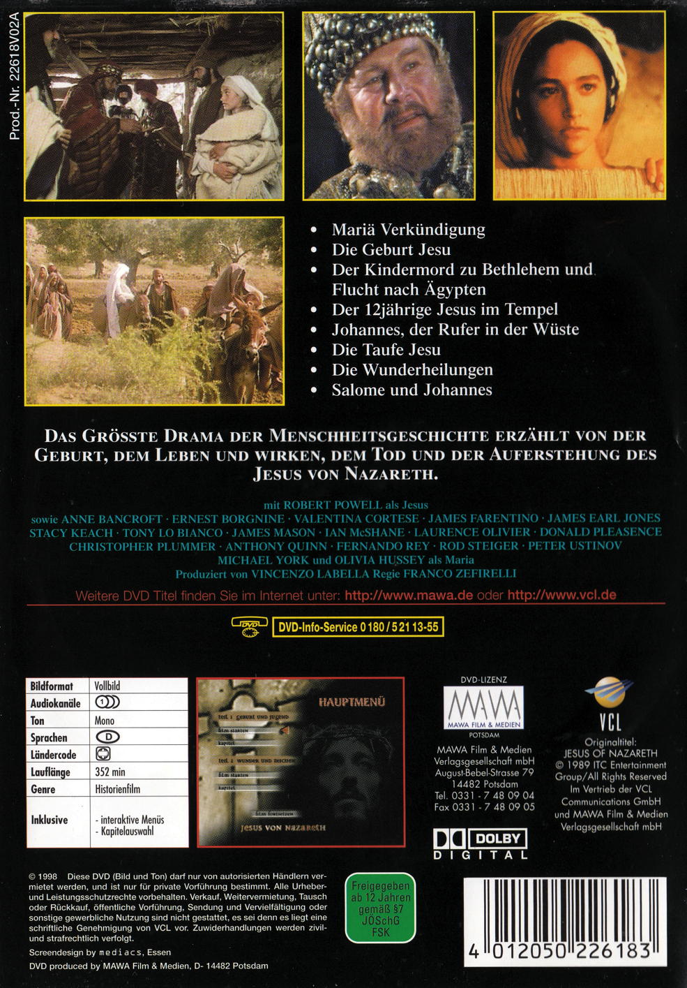 Teil 1: Die Verkündigung und Geburt Der Kindermord zu Bethlehem und Flucht nach Ägypten Der 12jährige Jesus im Tempel Johannes, der Täufer in der Wüste Teil 2: Die Taufe Jesu Die Wunderheilung Salome und Johannes Teil 3: Am See Genezareth Die Bergpredigt Das letzte Abendmahl Der Prozess Jesu Die Kreuzigung und Auferstehung
