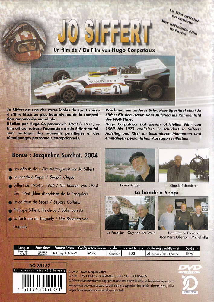 Réalisé par Hugo Corpataux de 1969 à 1971, ce film officiel retrace l'ascension de Jo Siffert en faisant partager des moments privilégiés et des témoignages personnels exceptionnels.