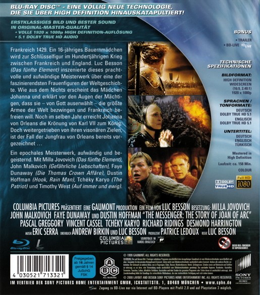 Behütet und harmonisch wächst das Mädchen Johanna auf dem Land auf. Dann geschieht das Unfassbare: Vor Johannas Augen wird ihre Schwester von durchziehenden Truppen geschändet und getötet. Die Momente des Schreckens lassen sie nie mehr los, denn fortan spricht Gott zu ihr, dem einfachen Bauernmädchen. Als Frankreich von der grössten Armee der Welt bedroht wird, erscheint Johanna wie aus dem Nichts und erklärt, dass sie - unterstützt von Gottes Willen - ihre Heimat befreien will. Die Schlachten sind bestialisch, blutig, brutal, aber Johanna bleibt Siegerin und erreicht die Krönung von Karl VII zum König. Damit aber zieht sie sich den Unwillen von Kirche und anderen einflussreichen Kreisen zu. Ohne ihr Wissen plant man Johannas Sturz...