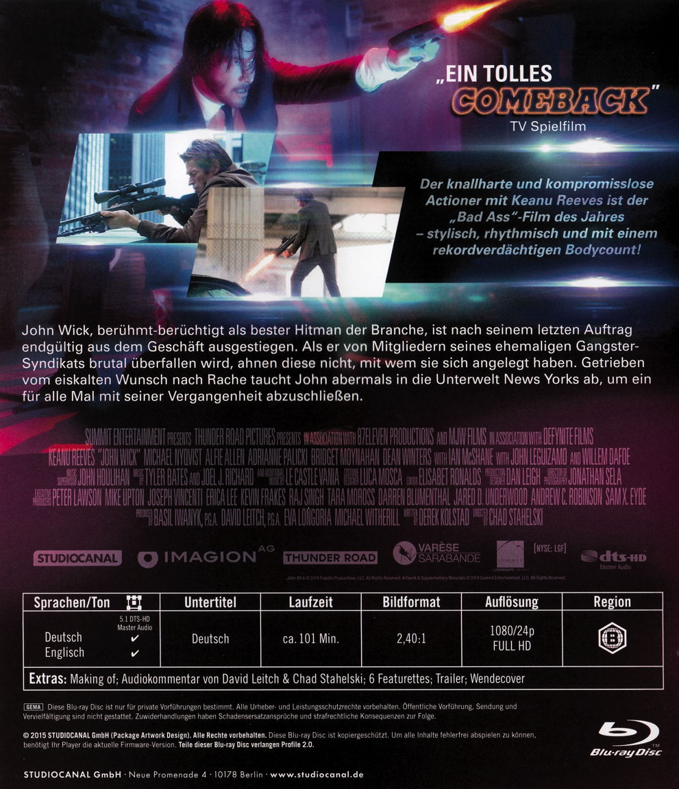 John Wick, berühmt-berüchtigt als bester Hitman der Branche, ist nach seinem letzten Auftrag endgültig aus dem Geschäft ausgestiegen. Doch die Ruhe währt nicht lange. Nach einem Überfall auf sein Haus sieht er sich seinem ehemaligen Boss gegenüber: Viggo Tarasof, Anführer des gefährlichsten Gangstersyndikats von New York. Um seine Vergangenheit für immer loszuwerden, rüstet er sich für den ultimativen Rache-Feldzug. Doch längst hat Viggo die besten Killer der Stadt auf John angesetzt. Darunter auch Johns alten Freund Marcus...