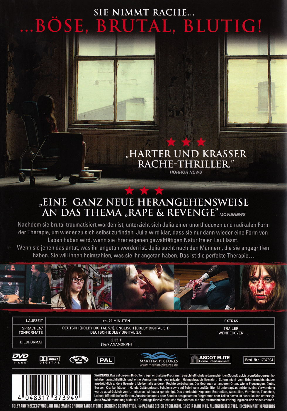 Nachdem sie brutal traumatisiert worden ist, unterzieht sich Julia einer unorthodoxen und radikalen Form der Therapie, um wieder zu sich selbst zu finden. Julia wird klar, dass sie nur dann wieder eine Form von Leben haben wird, wenn sie ihrer eigenen gewalttätigen Natur freien Lauf lässt. Wenn sie jenen das antut, was ihr angetan worden ist. Julia sucht nach den Männern, die sie angegriffen haben. Sie will ihnen heimzahlen, was sie ihr angetan haben. Das ist die perfekte Therapie.