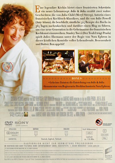 ine legendäre Köchin bietet einer frustrierten Sekretärin ein neues Lebensrezept. Julie & Julia erzählt zwei wahre Geschichten: die von Julia Child (Meryl Streep), Autorin eines französischen Kochbuch-Klassikers, und die von Julie Powell (Amy Adams), die beschliesst, sämtliche 524 Rezepte des Buchs in 365 Tagen nachzukochen und darüber einen Blog zu führen, um eine neue Generation in die Geheimnisse der französischen Kochkunst einzuweihen.