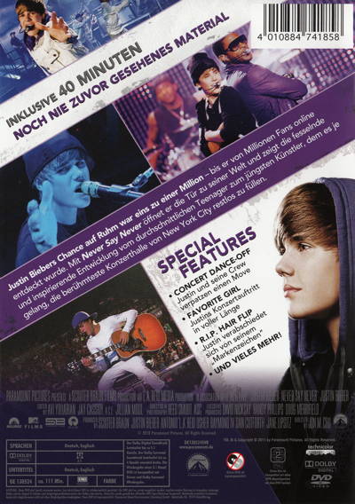 Justin Biebers Chance auf Ruhm war eins zu einer Million - bis er von Millionen Fans online entdeckt wurde. Mit "Never say never" öffnet er die Tür zu seiner Welt und zeigt die fesselnde und inspirierende Entwicklung vom durchschnittlichen Teenager zum jüngsten Künstler, dem es je gelang, die berühmteste Konzerthalle von New York City restlos zu füllen.