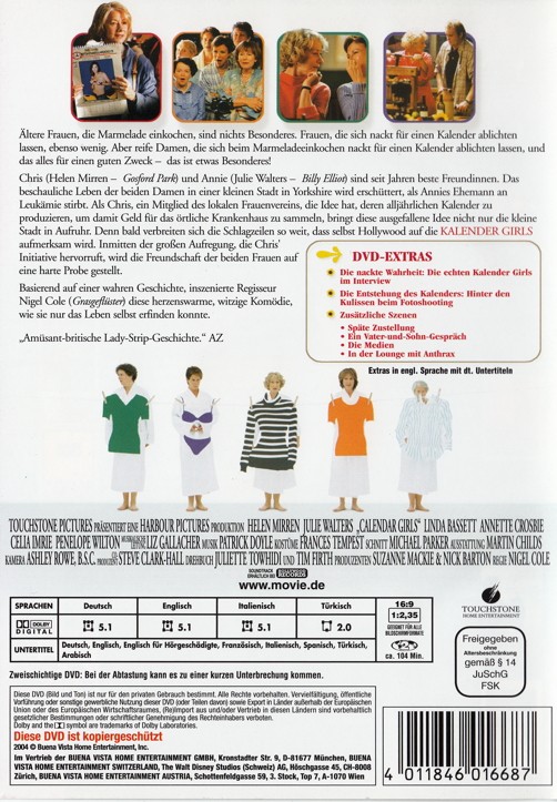 Ältere Frauen, die Marmelade einkochen, sind nichts Besonderes. Frauen, die sich nackt für einen Kalender ablichten lassen, und das alles für einen guten Zweck - das ist etwas Besonderes! Chris und Annie sind seit Jahren beste Freundinnen. Das beschauliche Leben der beiden Damen in einer kleinen Stadt in Yorkshire wird erschüttert, als Annies Ehemann an Leukämie stirbt. Als Chris, ein Mitglied des lokalen Frauenvereins, die Idee hat, deren alljährlichen Kalender zu produzieren, um damit Geld für das örtliche Krankenhaus zu sammeln, bringt diese ausgefallene Idee nicht nur die kleine Stadt in Aufruhr. Denn bald verbreiten sich die Schlagzeilen so weit, dass selbst Hollywood auf die Kalender Girls aufmerksam wird. Inmitten der grossen Aufregung, die Chris Initiative hervorruft, wird die Freundschaft der beiden Frauen auf eine harte Probe gestellt.