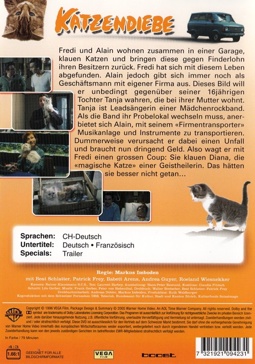Freddi Rüegg (Schlatter) ist ein Filou, wenn er auch keine Molotov-Cocktails in Polizeiwagen schmeisst. Er lebt in einer Garage und vom Finderlohn für «entlaufene» Katzen. Alain (Frey), der seiner halbwüchsigen Tochter gern den erfolgreichen Geschäftsmann vorspielt, in Wirklichkeit aber ziemlich auf den Felgen geht, beteiligt sich an dem Katzengeschäft und bringt seinen Unternehmergeist ein. Dies vor allem, als sein Lieferwagen mitsamt dem Equipement der Band seiner Tochter abhanden kommt und nur mit 1500 Franken bei der Russenmafia wieder ausgelöst werden kann: den grossen Coup erblicken die beiden Katzendiebe in der magischen Katze von Karin, einer ziemlich attraktiven Geistheilerin (Babett Arens). Für die weiteren Komplikationen sorgt folgerichtig die Liebe.
